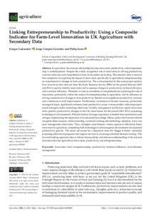 In agriculture, the intricate relationship between innovation, productivity, and entrepreneurship is underexplored. Despite the widely recognised role of innovation in driving productivity, concrete indicators and comprehensive farm-level studies are lacking. This research aims to unravel this complexity by exploring the impact of innovation, specifically in agricultural entrepreneurship, on transformative changes in farm productivity. The work presented in this manuscript explores how farm level data derived from the Farm Business Survey (FBS) for the period between 2003 – 2014, is used to identify innovators and, to assesses changes in productivity, technical efficiency, and economic efficiency. Therefore, it aims to contribute into comprehensively exploring the role of innovation, particularly within the context of entrepreneurship in agriculture, and its influence on driving transformative changes in farm productivity. Results reveal significant productivity varia-tion and a moderate overall improvement. Furthermore, investment in human resources, partic-ularly managerial input, significantly enhances farm productivity across various models, indicating experienced managers utilize technology effectively. Notably, management and human capital innovation drive positive productivity changes in the UK cereal sector for the period 2003 – 2014, surpassing technological advancements. Efficient farmers leverage experience to benefit from operational scale changes, emphasizing the importance of accumulated knowledge. Hence, policy interventions should recognize these nuances; while promoting vocational training aids technology adoption, it may not spur management innovation. Thus, strategies must balance various aspects to effectively foster innovation in agriculture, considering both technological and managerial ad-vancements for sustained productivity growth. The study advocates for a departure from the 'bigger is better' mentality, proposing educational programs and support services to encourage informed decision-making. This forward-looking approach aims to inform future policies and enhance understanding of the intricate dynamics between agricultural innovation, productivity, and entrepreneurship.