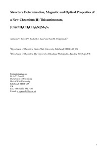 Structure determination, magnetic and optical properties of a new chromium(II) thioantimonate, [Cr((NH2CH2CH2)(3)N)]Sb4S7