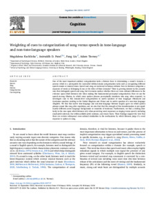 Weighting of cues to categorization of song versus speech in tone-language and non-tone-language speakers.