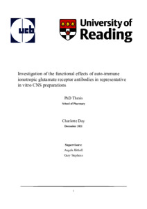 Day, C. (2022) Investigation of the functional effects of auto-immune ionotropic glutamate receptor antibodies in representative in vitro CNS preparations. PhD thesis, University of Reading. doi: 10.48683/1926.00115651