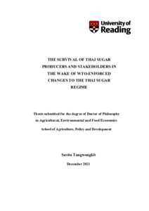 Tangwongkit, S. (2022) The survival of Thai sugar producers and stakeholders in the wake of WTO-enforced changes to the Thai sugar regime. PhD thesis, University of Reading. doi: 10.48683/1926.00115654