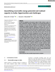 Quantifying renewable energy potential and realised capacity in India: opportunities and challenges.