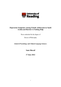 Binsaif, S. (2022) Depression symptoms among female adolescents in Saudi Arabia and barriers to seeking help. PhD thesis, University of Reading. doi: 10.48683/1926.00115734