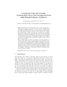 Cutting the cake into crumbs: verifying envy-free cake cutting protocols using bounded integer arithmetic.