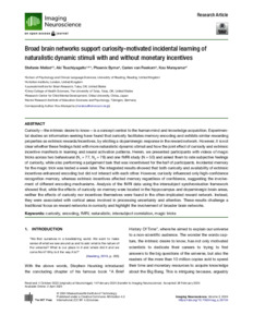 Broad brain networks support curiosity-motivated incidental learning of naturalistic dynamic stimuli with and without monetary incentives.