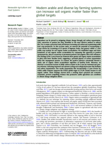 Gantlett, R., Bishop, J. ORCID: https://orcid.org/0000-0003-2114-230X, Jones, H. and Lukac, M. ORCID: https://orcid.org/0000-0002-8535-6334 (2024) Modern arable and diverse ley farming systems can increase soil organic matter faster than global targets. Renewable Agriculture and Food Systems, 39. e17. ISSN 1742-1713 doi: 10.1017/S1742170524000103