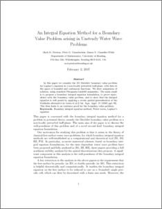 An integral equation method for a boundary value problem arising in unsteady water wave problems.