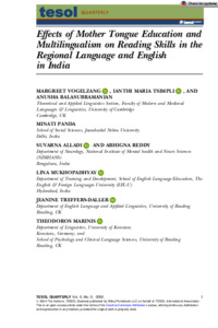 Tsimpli, I. M., Mukhopadhyay, L., Treffers-Daller, J., Alladi, S., Marinis, T., Panda, M., Balasubramanian, A., & Sinha, P. (2019). Multilingualism and multiliteracy in primary education in India: A discussion of some methodological challenges of an interdisciplinary research project. Research in Comparative and International Education, 14(1), 54–76. https://doi.org/10.1177/1745499919828908