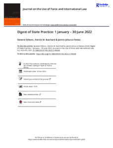 Butchard, P. M., Nessa, J. J., Kleczkowska, A., Stemeseder, M., Bagheri, S. ORCID: https://orcid.org/0000-0002-9398-8067, Pollard, M., Rapp, K., Svicevic, M., Etezazian, S., Abdou, M., Hasar, S., Nolan, T., Al Ghoozi, L., Ismail, H., Lobo, F., Rodríguez Silvestre, F. and Sahni, A. (2022) Digest of state practice: 1 January – 30 June 2022. Journal on the Use of Force and International Law, 9 (2). pp. 423-479. ISSN 2053-1710 doi: 10.1080/20531702.2022.2145004