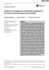 Göppinger, S., Luque, J. and Marcato, G. ORCID: https://orcid.org/0000-0002-6266-4676 (2024) Property management technology adoption in the short-term housing rental market. Real Estate Economics, 52 (5). pp. 1197-1225. ISSN 1540-6229 doi: 10.1111/1540-6229.12504
