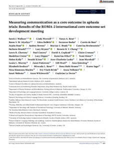 Wallace, S. J., Worrall, L., Rose, T. A., Alyahya, R. S.W., Babbitt, E., Beeke, S., De Beer, C., Bose, A. ORCID: https://orcid.org/0000-0002-0193-5292, Bowen, A., Brady, M. C., Breitenstein, C., Bruehl, S., Bryant, L., Cheng, B. B.Y., Cherney, L. R., Conroy, P., Copland, D. A., Croteau, C., Cruice, M., Dipper, L., Hilari, K., Howe, T., Kelly, H., Kiran, S., Laska, A.-C., Marshall, J., Murray, L. J., Patterson, J., Pearl, G., Quinting, J., Rochon, E., Rose, M. L., Rubi-Fessen, I., Sage, K., Simmons-Mackie, N., Visch-Brink, E., Volkmer, A., Webster, J., Whitworth, A. and Le Dorze, G. (2023) Measuring communication as a core outcome in aphasia trials: results of the ROMA‐2 international core outcome set development meeting. International Journal of Language & Communication Disorders, 58 (4). pp. 1017-1028. ISSN 1460-6984 doi: 10.1111/1460-6984.12840
