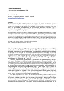 This article analyses the figure of Celia, questioning the description that emerges from the main account of Beckett’s early women. This account, originally developed by Bryden (1993), claims that women in Beckett’s early prose are represented through the filter of the male gaze, and are constructed in opposition to, and as an obstacle for, the male hero. This article argues that, in Murphy, the mechanisms set to reduce Celia to a stereotypical Woman, are foregrounded, and hence disrupted, by the presence of several contradicting perspectives, including Celia’s own perspective.