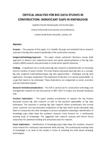Critical analysis for big data studies in construction: significant gaps in knowledge.