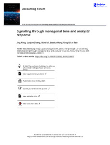 This study investigates the interaction between a tone signaller and receiver through managerial tone on a conference call. Based on a signalling framework, we examine the following research questions: Does the signal (tone) match the latent information it intends to convey? Can a receiver (analyst) interpret the signal correctly and send feedback to confirm (or disconfirm) it? Does the signalling environment impact signalling effectiveness? Using a sample of 3680 transcripts of earnings conference calls from 241 UK firms in the FTSE 350 Index, we find that managerial tone can produce effective signals that match private information from managers. Analysts understand tone signals accurately and send confirmation feedback to managers. They revise their forecasts upward (downward) following more (less) optimistic managerial tones. They consistently confirm and respond to managers with a similar tone. Analysts with superior expertise, experience and ability better understand the tone signal, leading to a larger reduction in forecast error. The information environment can moderate signalling effectiveness. This shows that managerial tone represents a reliable signalling device for transmitting latent information on a firm’s quality and future performance and that receivers can understand this signal correctly. This study highlights the signalling role of managerial tone in managers and analysts’ communication.