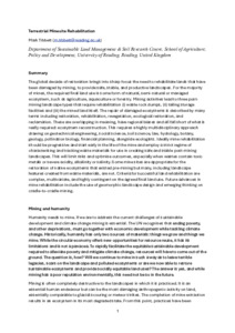The global decade of restoration brings into sharp focus the need to rehabilitate lands damaged by mining, to provide safe, stable, and productive landscapes. For the majority of mines, the required final land use is some form of natural, semi-natural or managed ecosystem, such as agriculture, aquaculture or forestry. Mining activities lead to new highly altered landscapes that require rehabilitation. These comprise various on-land stores of waste material and mined land itself. The repair of damaged ecosystems is described by many terms including restoration, rehabilitation, revegetation, ecological restoration, and reclamation. These terms overlap in meaning, have regional biases, and all fall short of what is really required: ecosystem reconstruction. This requires a highly multidisciplinary approach drawing on many disciplines including geotechnical engineering, social science, soil science, law, hydrology, botany, geology, pollination biology, financial planning, alongside ecology. Ideally, mine rehabilitation should be progressive, start early in the life of the mine, and employ a strict regime of characterising and tracking waste materials for use in creating safe and stable post-mining landscapes. These actions will limit risks and optimise outcomes, especially when waste materials contain toxic metals or have high levels of acidity, alkalinity or salinity. Some mine sites are appropriate for the restoration of native ecosystems and biodiversity that existed pre-mining, but many, including landscape features created from waste materials, are not. Criteria for successful land rehabilitation are complex, multivariate, and highly contingent on the agreed final land use. Future advances in mine rehabilitation include the use of geomorphic landscape design and emerging thinking on cradle-to-cradle mining. This primer will discuss the complex factors that need to be considered in ecosystem reconstruction after mining and outlines approaches for optimising land rehabilitation outcomes.