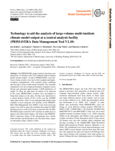 Technology to aid the analysis of large-volume multi-institute climate model output at a Central Analysis Facility (PRIMAVERA Data Management Tool V2.10).
