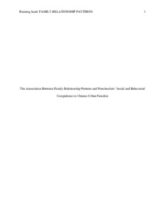The association between family relationship patterns and preschoolers’ social and behavioral competence in Chinese urban families.