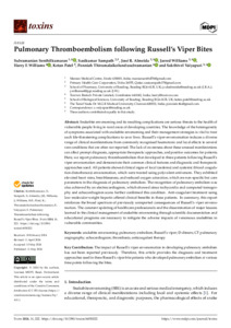 Snakebite envenoming and its resulting complications are serious threats to the health of vulnera-ble people living in rural areas of developing countries. The knowledge of the heterogeneity of symptoms associated with snakebite envenoming and their management strategies is vital to treat such life-threatening complications to save lives. Russell’s viper envenomation induces a di-verse range of clinical manifestations from commonly recognised haemotoxic and local effects to several rare conditions that are often not reported. The lack of awareness about these unusual manifestations can affect prompt diagnosis, appropriate therapeutic approaches, and positive outcomes for patients. Here, we report pulmonary thromboembolism that developed in three pa-tients following Russell's viper envenomation and demonstrate their common clinical features and diagnostic and therapeutic approaches used. All patients showed clinical signs of local (oe-dema) and systemic (blood coagulation disturbances) envenomation, which were treated using polyvalent antivenom. They exhibited elevated heart rates, which is a non-specific but core pa-rameter in the diagnosis of pulmonary embolism. The recognition of pulmonary embolism was also achieved by an electrocardiogram, which showed sinus tachycardia and computed tomog-raphy and echocardiogram scans further confirmed this condition. Anti-coagulant treatment us-ing low molecular weight heparin offered clinical benefits in these patients. In summary, this re-port reinforces the broad spectrum of previously unreported consequences of Russell’s viper en-venomation. The constant updating of healthcare professionals and the dissemination of major lessons learned in the clinical management of snakebite envenoming through scientific documen-tation and educational programs are necessary to mitigate the adverse impacts of venomous snakebites in vulnerable communities.