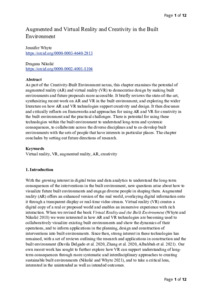 Whyte, J. and Nikolić, D. ORCID: https://orcid.org/0000-0002-4001-8104 (2024) Augmented and virtual reality and creativity in the built environment. In: Miao, J. T. and Yigitcanlar, T. (eds.) Routledge Companion to Creativity and the Built Environment. Routledge, Abingdon, pp. 376-385. ISBN 9781032274461 doi: 10.4324/9781003292821-34