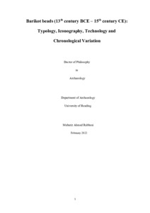 Rabbani, M. A. (2022) Barikot beads (13th century BCE – 15th century CE): typology, iconography, technology and chronological variation. PhD thesis, University of Reading. doi: 10.48683/1926.00116453