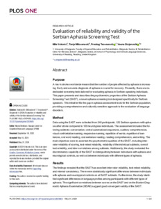 Evaluation of reliability and validity of the Serbian aphasia screening test.