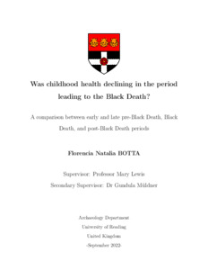 Botta, F. N. (2024) Was childhood health declining in the period leading to the Black Death? A comparison between early and late pre-Black Death, Black Death, and post-Black Death periods. PhD thesis, University of Reading. doi: 10.48683/1926.00116527