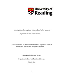 Alsalem, D. K. (2021) Investigation of beta-glucan extracts from barley grain as ingredient in food formulations. PhD thesis, University of Reading. doi: 10.48683/1926.00116659