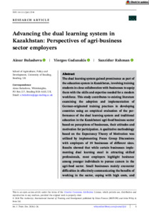 Advancing the dual learning system in Kazakhstan: perspectives of agri-business sector employers.