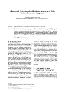 Worldwide competition is forcing companies to collaborate in digital business ecosystems (DBEs) in order to leverage resources and survive in the global market. However, the engagement of companies in DBEs is confronted by a number of practical issues. This research has as its objective the discovery of the critical factors and the framework that enable organisations to assess their readiness in engaging in DBEs to cooperate with their peers. To accomplish the objective, this research has explained the related concepts and theories and developed a research framework grounded on a theoretical and literature review background. The assessment results help identify specific key weakness for the companies to improve themselves to implement DBE engagement in the future.