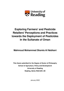Al Nabhani, M. M. S. (2022) Exploring farmers’ and pesticide retailers’ perceptions and practices towards the deployment of pesticides in the sultanate of Oman. PhD thesis, University of Reading. doi: 10.48683/1926.00116732