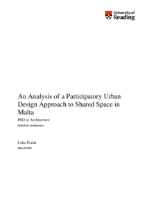 Psaila, L. (2022) An analysis of a participatory urban design approach to shared space in Malta. PhD thesis, University of Reading. doi: 10.48683/1926.00116737