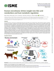 Rumen microbiome-driven insight into bile acid metabolism and host metabolic regulation.