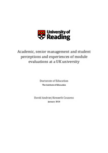 Cousens, D. A. K. (2024) Academic, senior management and student perceptions and experiences of module evaluations at a UK university. EdD thesis, University of Reading. doi: 10.48683/1926.00116808
