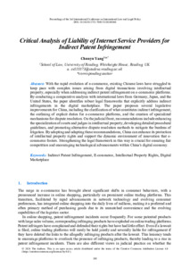 Yang, C. (2024) Critical analysis of liability of internet service providers for indirect patent infringement. Lecture Notes in Education Psychology and Public Media, 53 (1). pp. 198-205. ISSN 2753-7056 doi: 10.54254/2753-7048/53/20240060