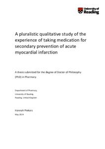 Piekarz, H. (2024) A pluralistic qualitative study of the experience of taking medication for secondary prevention of acute myocardial infarction. PhD thesis, University of Reading. doi: 10.48683/1926.00116876