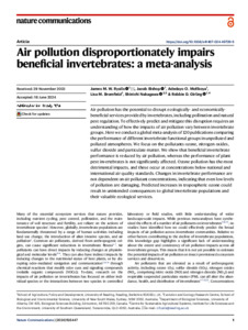 Air pollution disproportionately impairs beneficial invertebrates: a meta-analysis.
