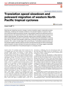 Translation speed slowdown and poleward migration of western North Pacific tropical cyclones.