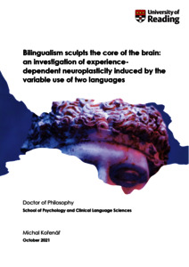 Korenar, M. (2022) Bilingualism sculpts the core of the brain: an investigation of experience-dependent neuroplasticity induced by the variable use of two languages. PhD thesis, University of Reading. doi: 10.48683/1926.00116927