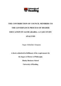 Alnajran, S. A. (2024) The contribution of council members to the governance process of higher education in Saudi Arabia: a case study analysis. PhD thesis, University of Reading. doi: 10.48683/1926.00117048