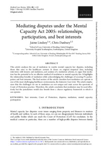 Lindsey, J. and Danbury, C. (2024) Mediating disputes under the Mental Capacity Act 2005: relationships, participation, and best interests. Medical Law Review, 32 (3). pp. 336-355. ISSN 1464-3790 doi: 10.1093/medlaw/fwae014
