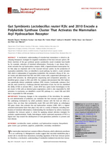 Gut symbionts Lactobacillus reuteri R2lc and 2010 encode a polyketide synthase cluster that activates the mammalian aryl hydrocarbon receptor.