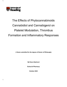 Alzahrani, E. (2024) The effects of phytocannabinoids cannabidiol and cannabigerol on platelet modulation, thrombus formation and inflammatory responses. PhD thesis, University of Reading. doi: 10.48683/1926.00117258