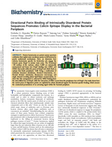 Directional porin binding of intrinsically disordered protein sequences promotes colicin epitope display in the bacterial periplasm.
