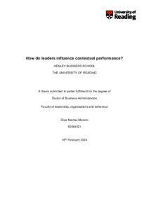 Maribe-Moremi, D. (2024) How do leaders influence contextual performance? DBA thesis, University of Reading. doi: 10.48683/1926.00117299