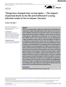 ‘Things have changed since we last spoke…’: the impacts of parental death on the life and livelihood of a young informal vendor in Dar es Salaam, Tanzania.