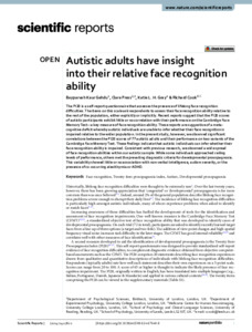 Autistic adults have insight into their relative face recognition ability.