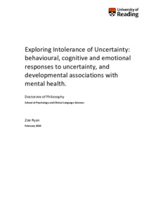 Ryan, Z. (2024) Exploring Intolerance of Uncertainty: behavioural, cognitive and emotional responses to uncertainty, and developmental associations with mental health. PhD thesis, University of Reading. doi: 10.48683/1926.00117373