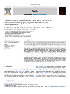 The effectiveness of personalised food choice advice tailored to an individual’s socio-demographic, cognitive characteristics, and sensory preferences.