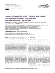 Holocene climates of the Iberian Peninsula: pollen-based reconstructions of changes in the west–east gradient of temperature and moisture.