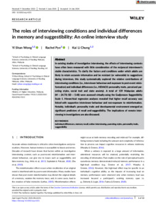 The roles of interviewing conditions and individual differences in memory and suggestibility: an online interview study.